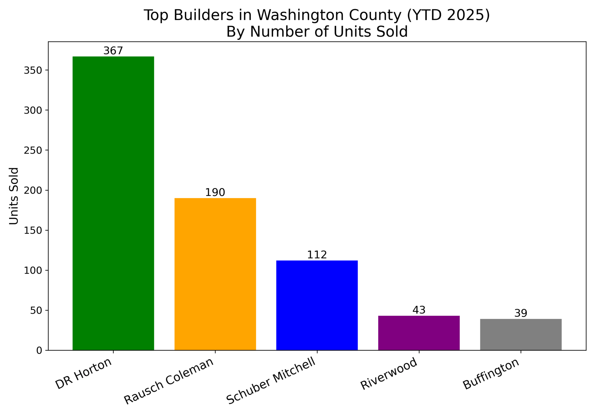 🏷️ Washington County: More affordable pricing (11% lower median) is accelerating absorption and builder activity.